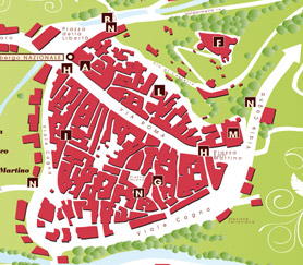 Die „Trevi“ (die Bezeichnung kleiner Plätze und verwinkelter Gässchen im örtlichen Dialekt) bilden ein verworrenes Labyrinth aus engen Gassen, die den gesamten historischen Ortskern durchziehen und sowohl von der Via Roma als auch von der Umgehungsstraße aus zugänglich sind.